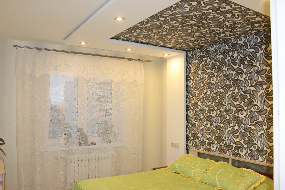 Как же лучше всего скомбинировать на потолке обои двух цветов и можно ли это сделать в спальне?