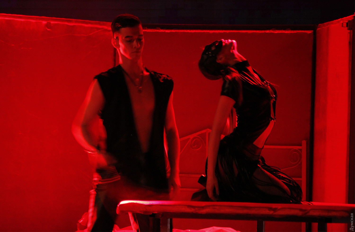 черной повязкой на глазах в красной комнате, но основное внимание было приковано к
