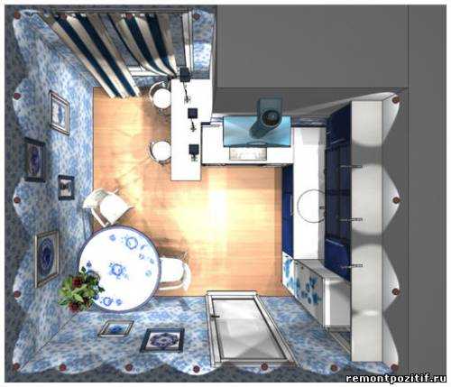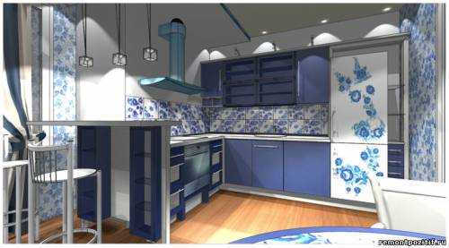 Прим. картинки дизайна кухни в стиле гжель можно увеличить.