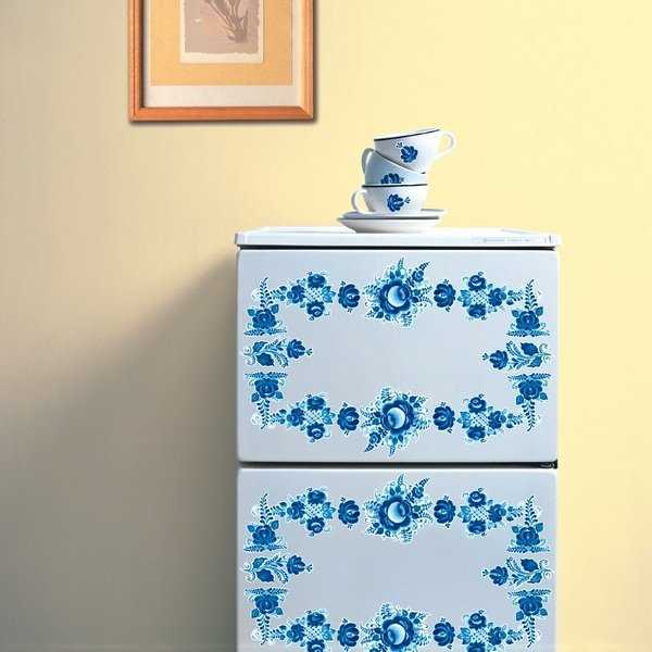Более всего стилистика гжель популярна для оформления кухни. Тарелки, кухонная утварь, бытовая техника — могут быть украшены гжелью. Также рисунок можно нанести на мебельные фасады, заказать или найти стеновые панели с подходящих орнаментом.