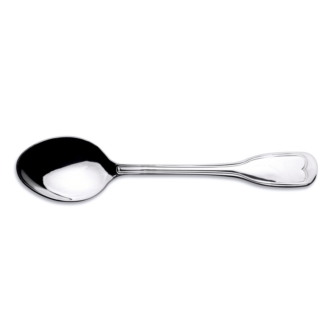 - Десертная – используется для употребления мороженого, пирожных, тортов, суфле и других десертов из небольших тарелок и креманок. Эти ложки могут использоваться и при подаче супов, но только в том случае, если их наливают в бульонные чашки.