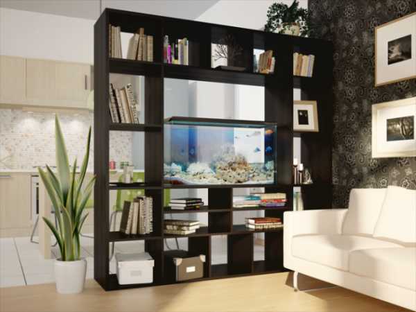 А вот если в однокомнатной квартире живет всего один человек, который хочет разделить комнату на два помещения, например, на кабинет и спальню, то не стоит ломать голову над установкой гипсокартонной перегородки или дорогого и громоздкого шкафа-купе. Гораздо лучше будет просто установить стеллаж. Желательно выбрать стеллаж с открытой конструкцией, ведь такое решение имеет множество плюсов.