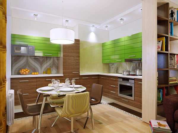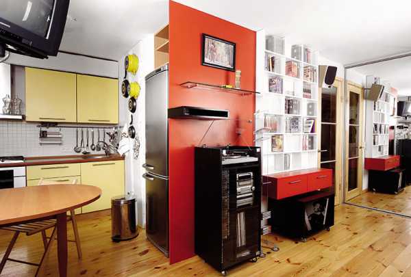 Перегородка между кухней и комнатой просто сносится, в результате чего вы получаете довольно большое помещение, один из углов в котором отводится под кухню.