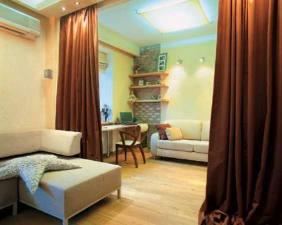 Или же, если в квартире живет один человек, который принимает решение разбить единственную комнату на спальную (она же будет выступать в роли гостиной) и кабинет, где он будет работать. Увы, этот вариант осуществим далеко не всегда. Потому что для разбивки одной комнаты на две, желательно чтобы изначально её площадь составляла не менее 18 квадратных метров. В противном случае вместо двух комнат получится две крохотные каморки, в которых просто некомфортно находиться.