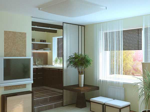 Этот способ относится к расширению общей площади помещения. Если убрать стену между гостиной и балконом, то вполне можно преобразовать помещение в двухкомнатную квартиру. Советы по зонированию: