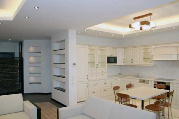 Этот вариант предназначен для квартир с высокими потолками, в которых разделение пространства на зоны можно осуществить при помощи применения уровней разной высоты. Варианты уровневого зонирования: