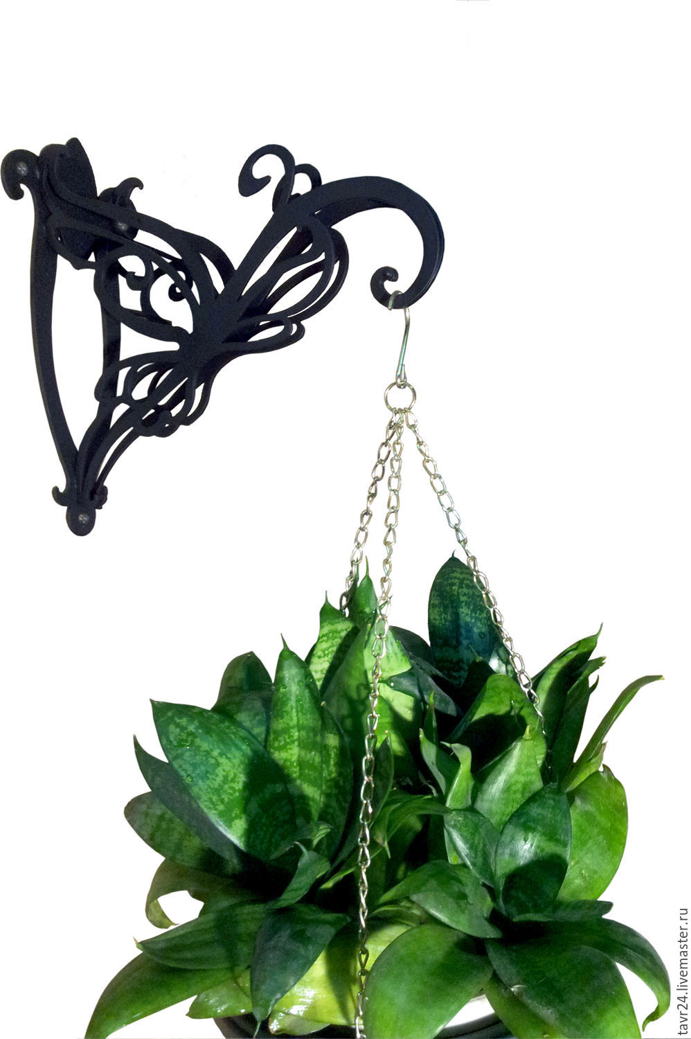 Чаще всего она делается кованой.Стильным и занимающим мало места считается специальное выдвижное крепление. В этом случае один карабин крепится под потолком, а на втором – подвешивается само кашпо. Крепление не только выглядит красиво, но и упрощает процедуру ухода за растением, так как позволяет опускать горшок вниз вплоть до 90 сантиметров. На открытых верандах чаще всего монтируется крюк, на котором при помощи кованых цепочек или прочного троса и подвешиваются растения. Для подвешивания на какой-либо крепкой основы потребуется прочный шпагат, шнур или веревка. Для балконов, беседок и лестничных проемов существуют специальные сетчатые конструкции с изогнутым креплением, которое фиксируется на перилах. В такой своеобразный ящик ставится само кашпо. Сосуды, предназначенные для оформления забора, сразу же делаются с крючками.