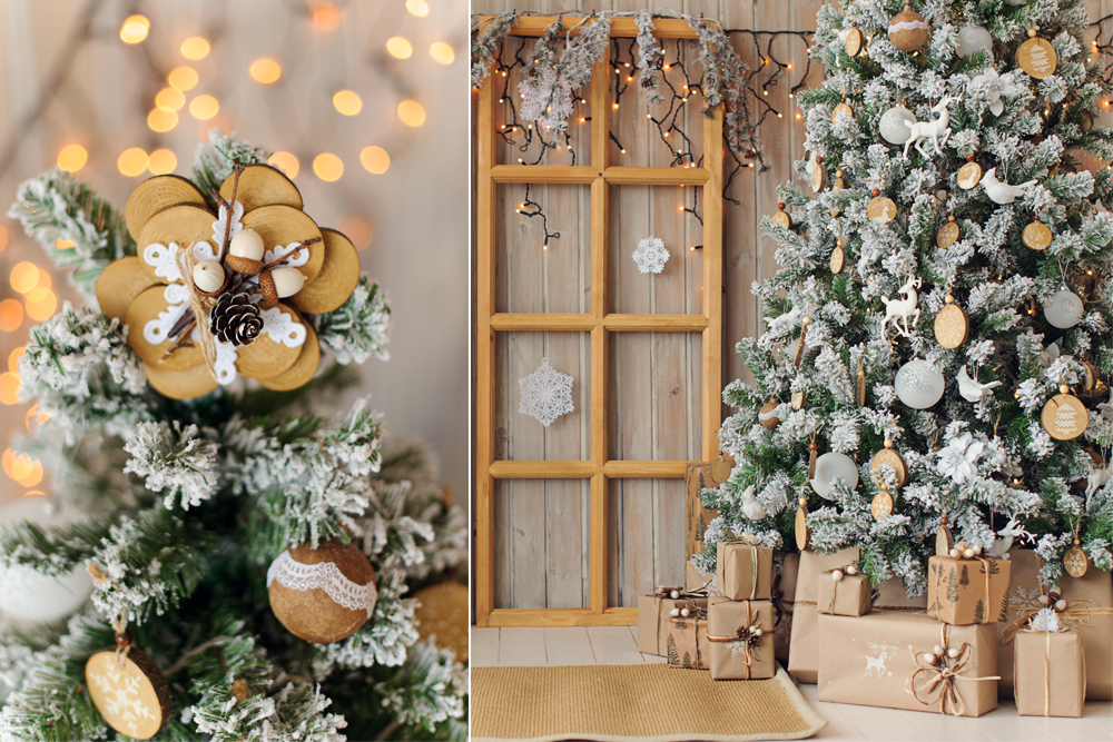 - Природный материал декораций дарит ощущение красоты зимнего леса.