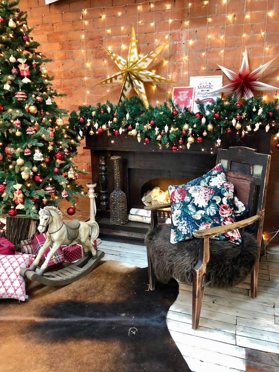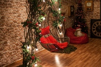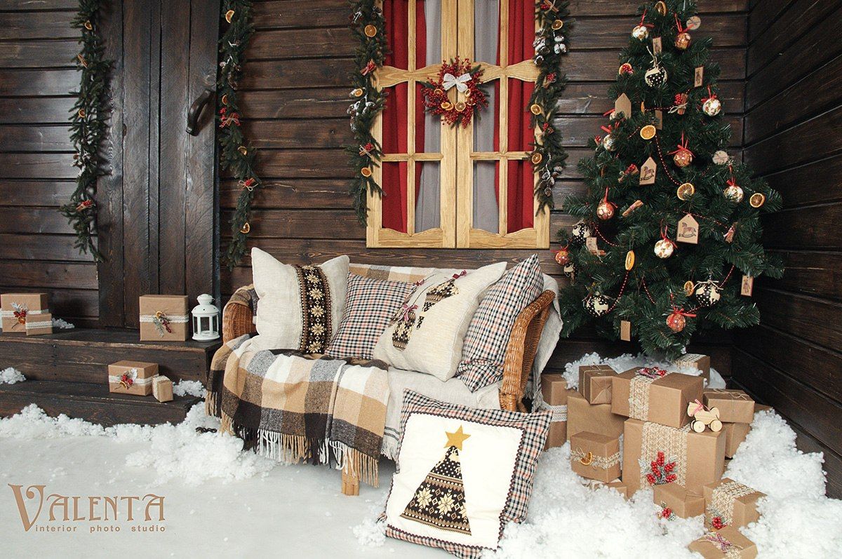 - Новогодний уголок для фотосессии выполнен в стиле уютного кантри.