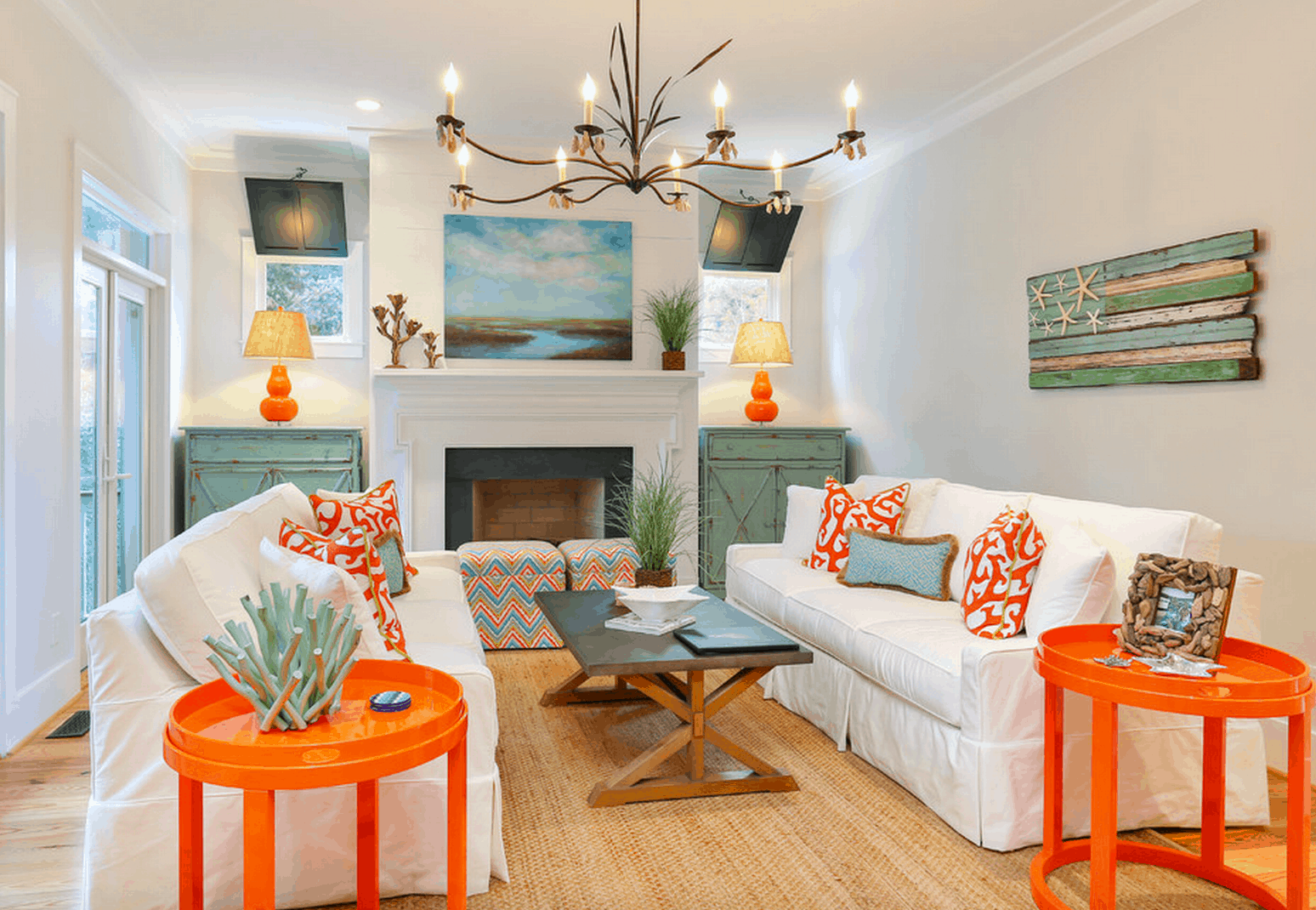 - Так называемый, «апельсиновый» оттенок оранжевого – раздражает в любых помещениях.