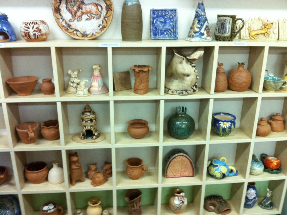 Есть творческие студии, предлагающие обжиг с покрытием глазурями или другими красками для керамики. Однако, мало где Вас смогут обучить всем тонкостям работы с керамикой от подготовки глиняной массы для лепки до загрузки готовых изделий в печь.