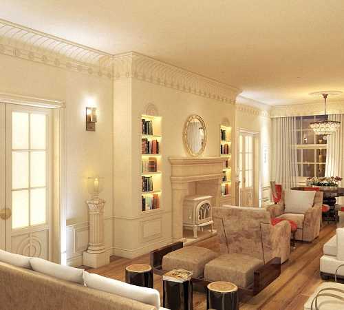 3. Камин — возможен вариант установки углового, настенного или напольного каминов. Главным условием — соблюдение классического стиля в их оформлении.