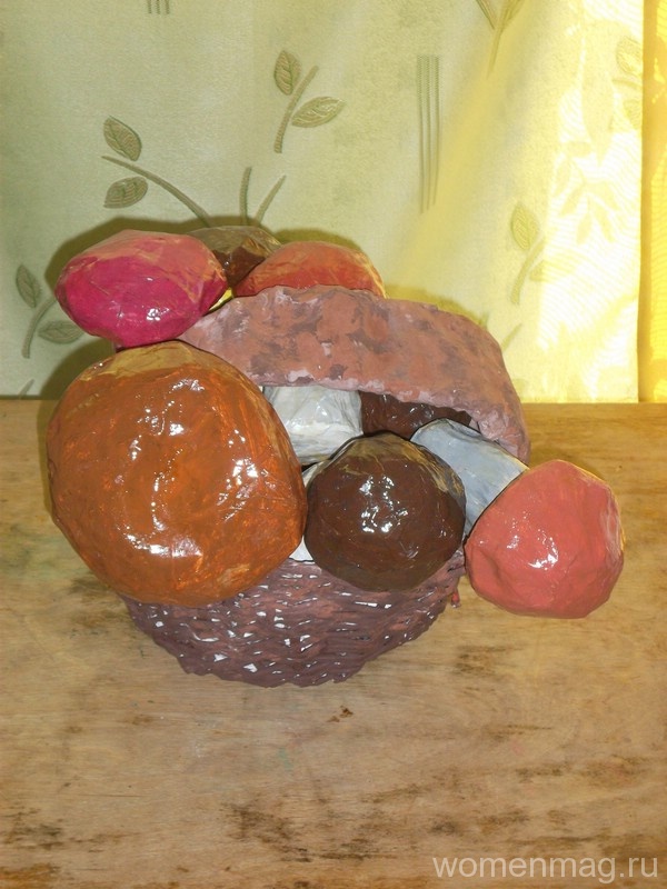 - Первый способ: за основу берутся кусочки газеты, клейстер, вода и предмет, который оклеивается бумажными кусочками. После высыхания, предмет убирается, а заготовка раскрашивается и покрывается лаком.
