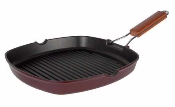 - Немецкая марка Gipfel предлагает довольно лёгкие чугунные сковородки гриль. Они отличаются цветом, размером и типом покрытия — антипригарное трёхслойное или керамическое напыление.