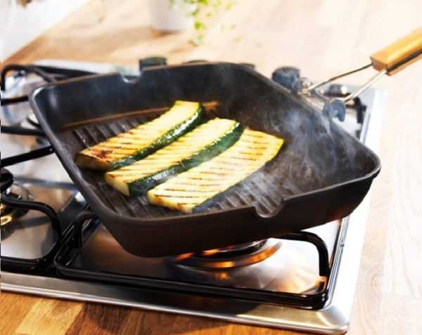 Сковорода для гриля — нужная в хозяйстве вещь. Блюда получаются не только вкуснее и полезнее, они очень эстетично выглядят за счёт зажаристых полос от решётки. Экспериментировать с такой утварью — одно удовольствие!