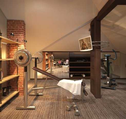 Если вам не требуются дополнительные жилые помещения, или на чердаке совсем нет окон, — организуйте в нем спортивный зал! Беговая дорожка и другие тренажеры, баскетбольная корзина, прыгалки и другие спортивные снаряды помогут вас всегда держать себя в форме.