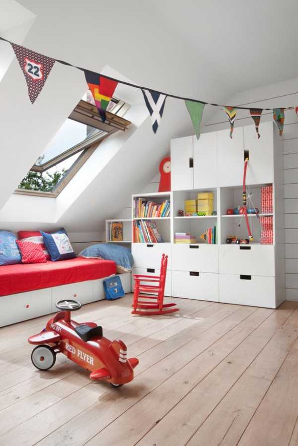 Детям жить под крышей нравится больше всего, к тому же, они не испытывают дискомфорта из-за низких потолков. Для них можно оформить комнату в самом необычном стиле, обустроив ее, например, как каюту корабля или мультифункциональную игровую.