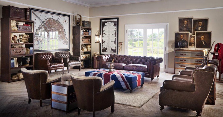 В стимпанк-интерьер органично впишутся предметы мебели в викторианском стиле: кожаный диван честерфилд, большие комфортные кресла капитоне с медными заклепками, секретер и др.