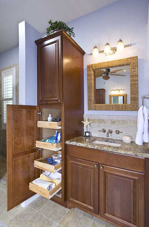 Многоуровневые системы хранения очень удобны для ванной комнаты. Вы можете использовать разные уровни для разных вещей. Все остается на виду, и вы всегда все быстро найдете.