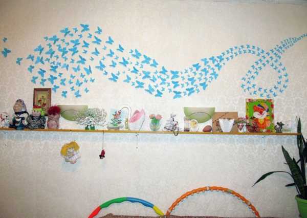 Праздничную атмосферу в доме помогут создать рисунки из бумажных элементов: бабочек, снежинок, сердечек, цветов и даже простых геометрических фигур, сложенных в витиеватые узоры. При помощи разноцветной бумаги и двустороннего скотча вы можете декорировать стену по своему настроению сколько угодно раз, к тому же такое украшение стен будет приятным сюрпризом для именинника.