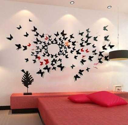 Оформление стен наклейками является наипростейшим способом в декорации помещения. Купил и наклеил. Если же вы не ищите легких путей, тогда изготовьте наклейки своими руками. Для этого понадобиться готовый трафарет или изготовленный вручную.