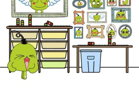 Создайте зону для творчества, чтобы упорядочить творческий процесс ребенка. Это может быть просто стена, вдоль которой развешаны ёмкости с карандашами и мелками. Оклейте её обоями-раскрасками или покройте краской с эффектом меловой доски. Как вариант — детский столик. На стене, к которой он примыкает, развесьте работы юного художника — таким образом вы решите вопрос с хранением детских рисунков.