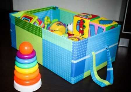 Отличным вариантом могут послужить старые покрышки. Перед использованием их желательно хорошо помыть и покрасить в разные цвета. Затем уложить покрышки друг на друга и скрепить их вместе либо проволокой по внутренней стороне, либо проделать отверстия и связать их веревкой. Такой вариант для хранения игрушек хорошо подойдет мальчикам.