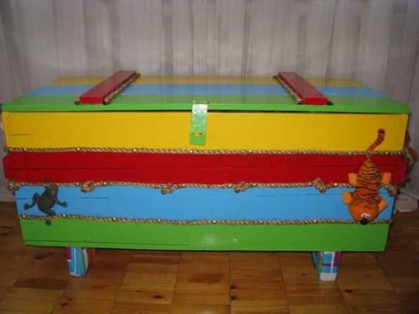 7. Сундук. Да, старый добрый сундук, в котором малыш будет хранить свои сокровища. Сундук может быть деревянным (возможно, даже резным или расписным), плетеным, пластиковым. В продаже можно найти легкие и очень яркие изделия из пластика.