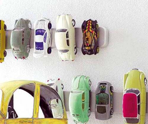 Для хранения модельных металлических автомобилей можно использовать магнитный держатель. Таким образом, можно легко избавиться от вероятности наступить на них и упасть. Стоимость такого магнитного держателя для ножей довольно низкая, а эффективность его высокая, так как ребенку будет самому интересно, за счет чего держатся машинки и он будет их всегда вешать на место.