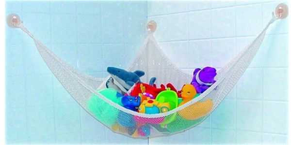 Такие гамаки и сетчатые корзинки очень удобны для хранения в ванной игрушек для купания