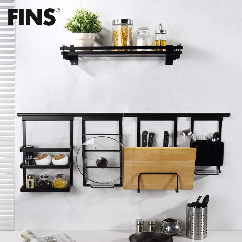 К навесным системам можно отнести и полки на крюках, которые цепляются за рейлинг на кухне.