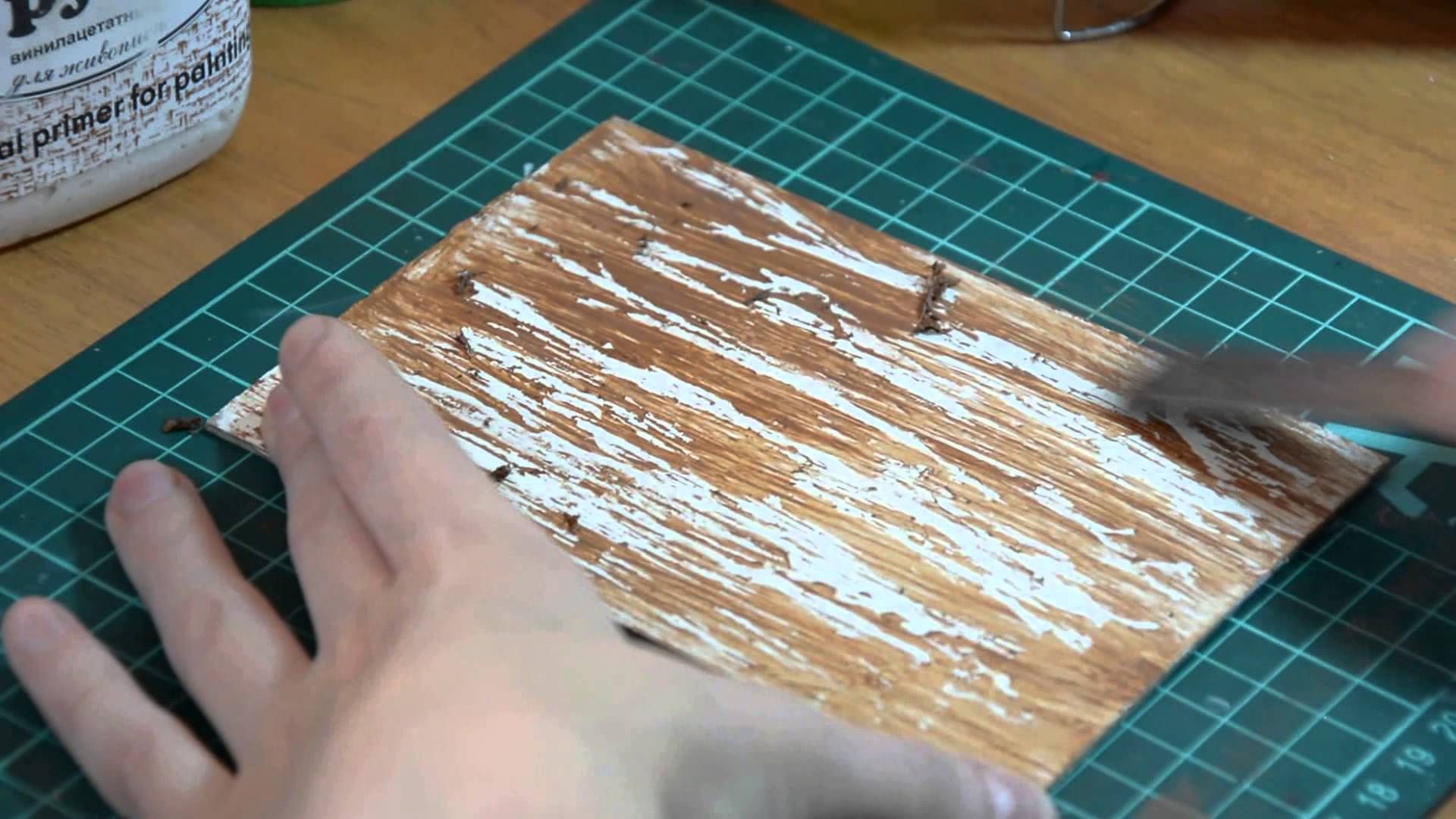 Совершенно неожиданно первый слой белил сразу лег так, что практически без всяких усилий создал имитацию древесных волокон.