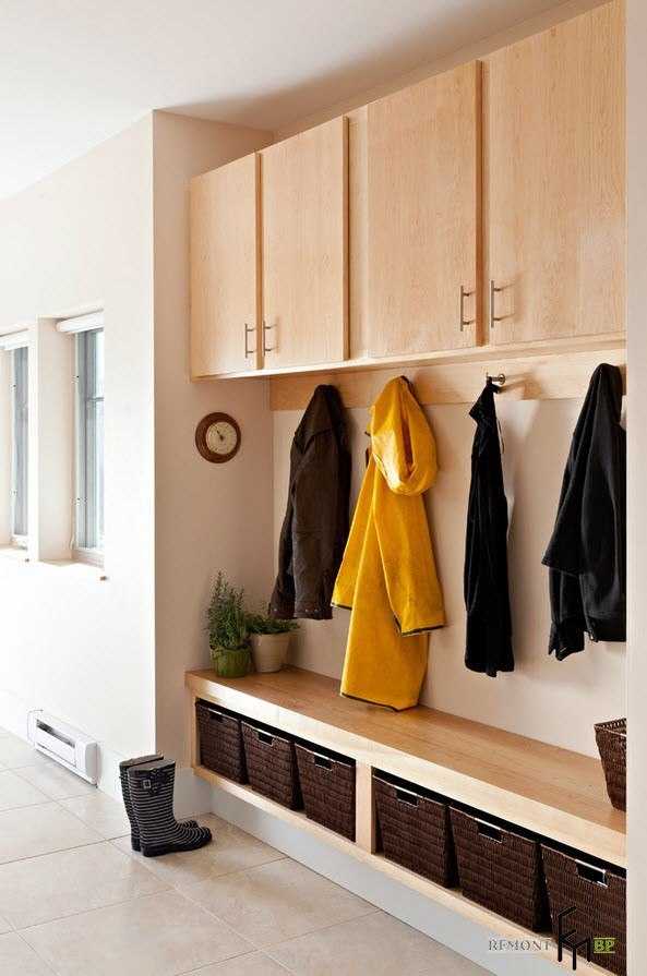 Главная роль, конечно же, отводится шкафу. В идеале он должен иметь как минимум три отдела: для обуви, для одежды, для головных уборов и различных аксессуаров.