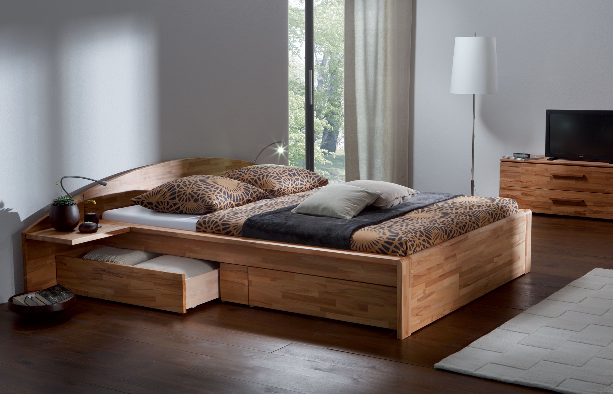 Эта кровать-платформа — один из самых популярных стилей оснований, так как она дает вам много места для хранения вещей, которое иначе было бы потрачено под кроватью. Мне очень нравится нежный цвет дерева. Эта комната идеально подойдет для подростка или подростка, как показано на этом рисунке. Просто, но очень эффективно.