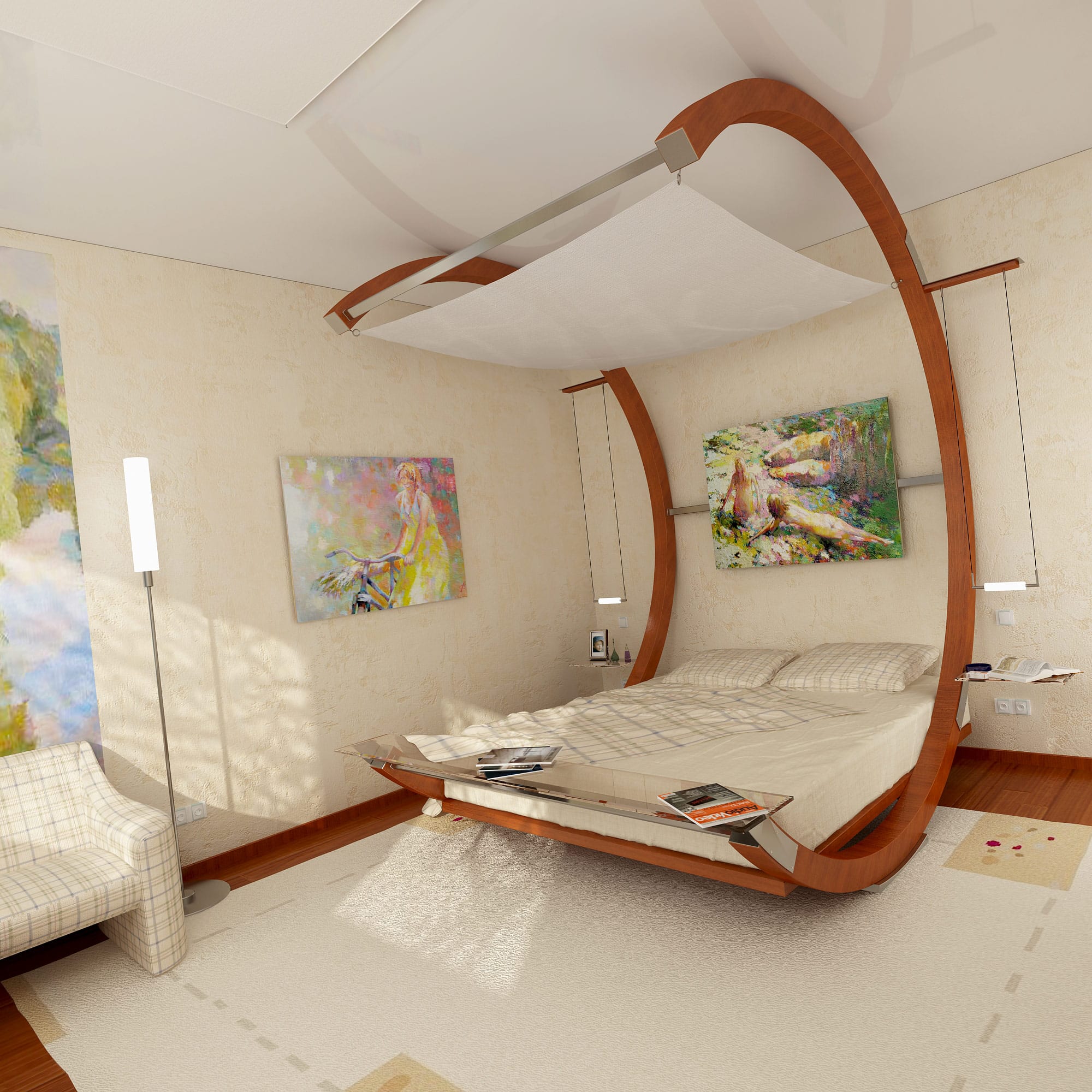 17. Кровать-маятник. Внешне данная модель смотрится простовато, но в эксплуатации великолепна, если Вам не спится, стоит только чуть раскачать механизм, и он будет плавно покачиваться из стороны в сторону.