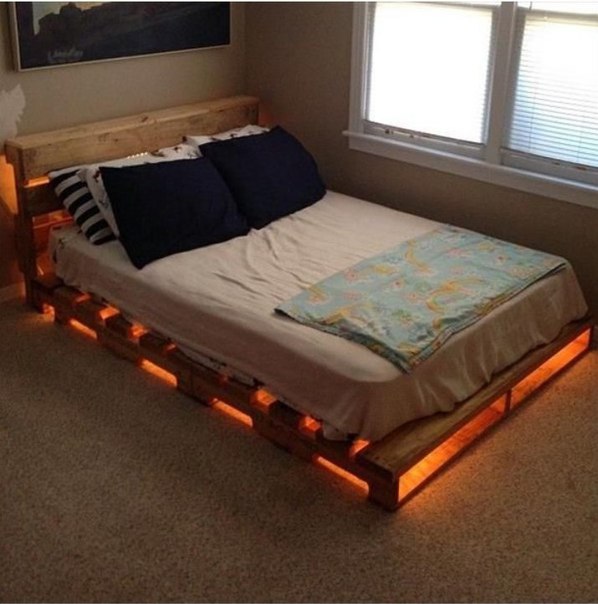Еще одна простая конструкция, но превосходно собранная, делает эту кровать максимально красивой. Ночник в подголовнике — отличное дополнение, а потайные ящики в верхней части кровати станут отличным местом для хранения телефона или пары книг.Сама база ничего особенного, но я имею в виду, что это в лучшем виде. Сделать что-то подобное самому действительно легко, так почему бы не попробовать!