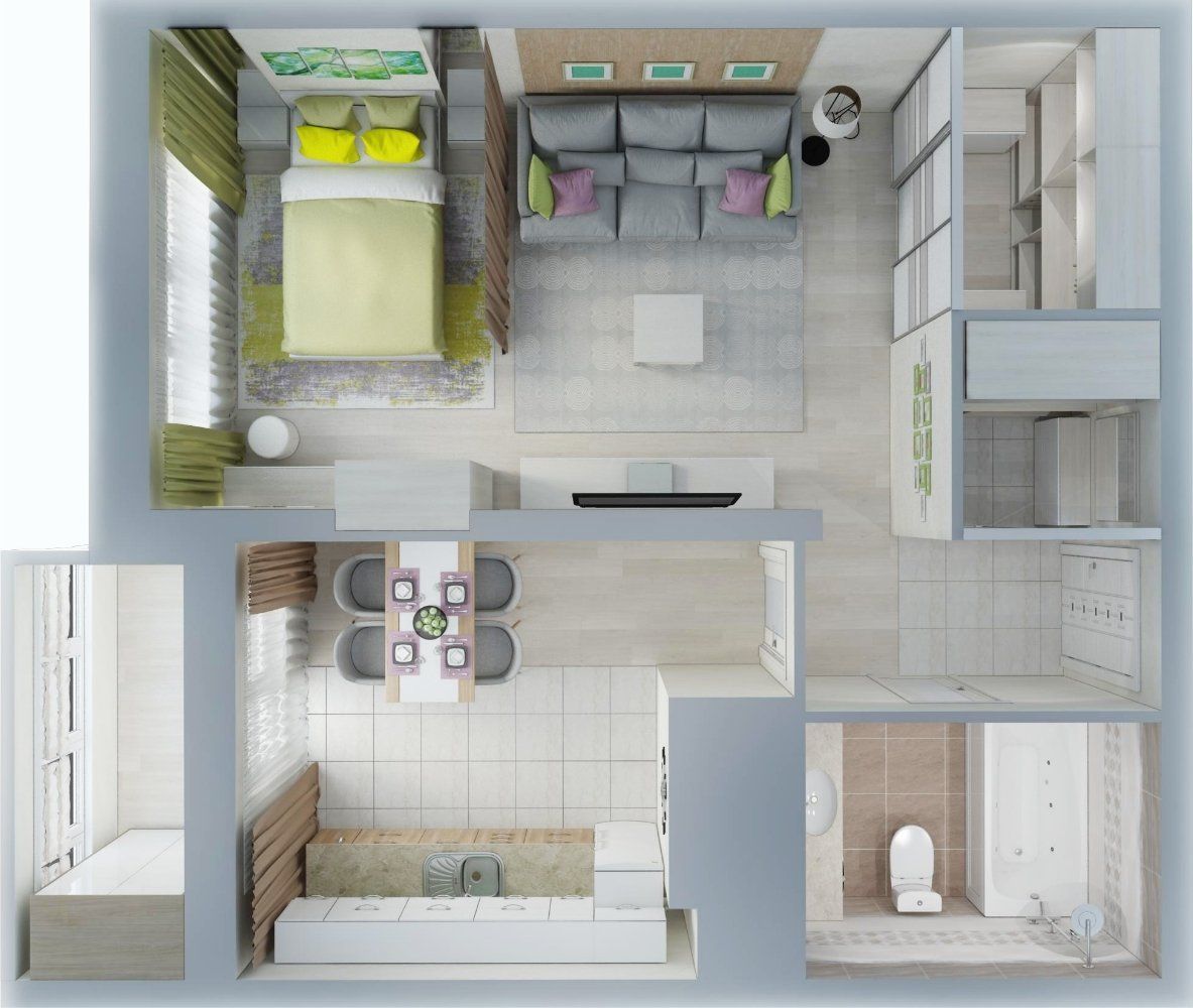 Идеи дизайна однокомнатной квартиры 40 кв. м с разделением на зоны