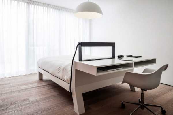- Объединение стола и кровати: современные кровати-трансформеры можно найти в любом крупном мебельном магазине. А в нижней части кровати могут удобно расположиться… книжные полки.