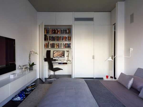 Не всегда получается организовать рабочий уголок в отдельной комнате или гостиной, так как габариты квартиры могут этого не позволить. Ведь мало у кого в распоряжении есть трех- или четырехкомнатная квартира с отдельным помещением под кабинет. Тогда остается единственный вариант – спальня. Тихое, уединенное место, куда заглядывают реже всего, поэтому она становится идеальным помещением для плодотворного труда.