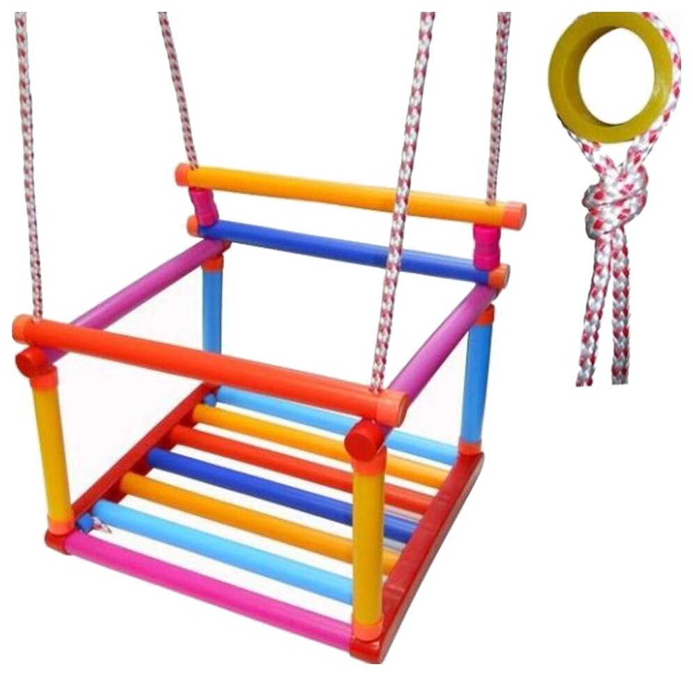Причем для маленьких детей лучше будет приобрести качельки, имеющие спинку и разделитель для ножек. Обязательно обратите внимание на материалы, из которых изготовлена конструкция, особенно если покупаете качели для малышей. Они должны отвечать экологическим нормативам и всем требованиям безопасности.
