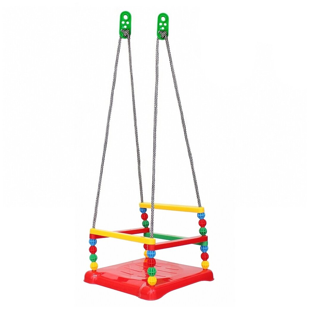 Качели с ткаными спинками и сидениями очень удобны, поскольку малышу мягко и комфортно на них сидеть, а родителям можно без труда снять такие чехлы и выстирать в любой момент.