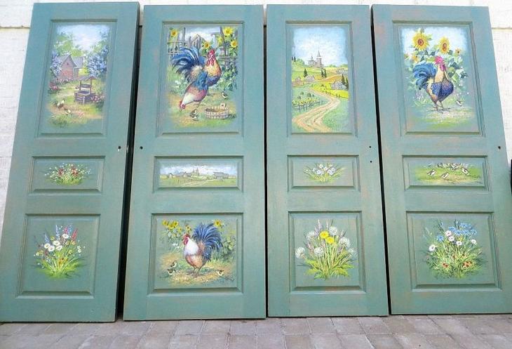Исправить все можно с применением наклеек или же если имеется художественные навыки, то можно использовать дверное полотно в качестве холста, на котором можно воплотить в реальность самые интересные сюжеты.