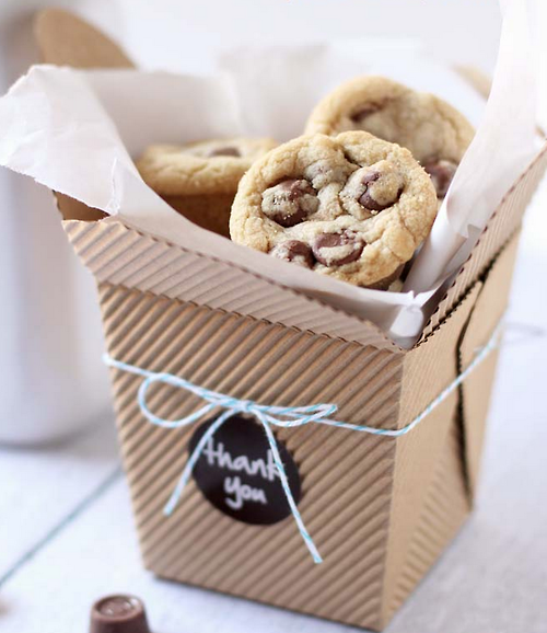 Кухонные формы делают подарочные контейнеры привлекательными и служат получателю еще долго после того, как печенье съедено. Здесь из формочек для пудинга, выстланных пергаментом, получаются отличные сосуды для мягкого печенья.