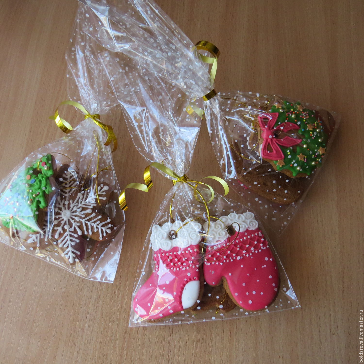 Упаковать каждый пряник или домашнее печенье можно в отдельный прозрачный пакет, украсив его ленточкой или серпантином.