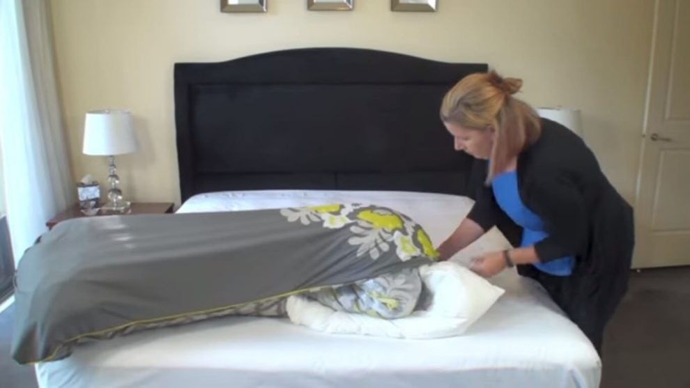 Наряду со складыванием простыней, надевание пододеяльника — одна из самых сложных задач, которые приходится выполнять в одиночку. Этот гениальный совет значительно облегчит регулярную смену постельного белья.