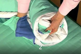 Как только вы закончите с этим, вы должны свернуть одеяло и пододеяльник, начиная с верхней части кровати до конца кровати . Постарайтесь равномерно свернуть и одеяло, и пододеяльник до конца кровати.