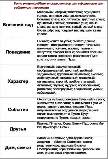 Рис. 3. Я выделила все признаки, которые характеризуют ослика Иа-ИаДальнейшая индивидуальная работа с таблицей (рисунок 3) позволила каждому ребёнку выделить и уточнить существенные и второстепенные характеристики (признаки) того персонажа, которому он симпатизировал. Однако не все дети смогли выявить признаки своего персонажа в полном объёме. Об этом стало известно, когда дети объединились в малые группы для дальнейшей работы.
