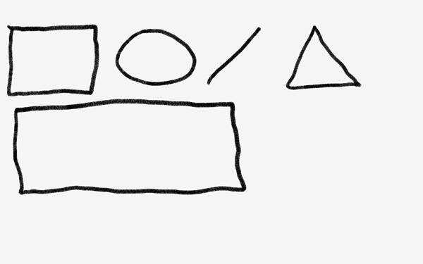 Начните с круга, квадрата, прямоугольника, линии, треугольника. Все просто, правда? Немного неровно, но вы ведь не на уроке геометрии.