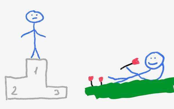 Потренируйтесь на какой-нибудь статье, например, «Есть ли жизнь за пределами топ-10 выдачи». Допустим, после прочтения материала вы хотите показать, что сайты за пределами топа выдачи чувствуют себя хорошо. Можно придумать десятки образов, выражающих эту идею. Например, можно нарисовать человека на пьедестале со скучным лицом. Это сайт в топ-10 выдачи. В возле пьедестала лежит на травке еще один улыбающийся человек. Это прекрасно чувствующий себя сайт со второй страницы выдачи. Остается нарисовать простой рисунок.