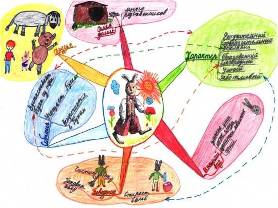 Чтобы установить связь между словесными и образными представлениями персонажей и событий, происходящих с ними, мы по мере работы с текстом рисовали сюжетные картинки, изготавливали поделки. При использовании таких средств выразительности у детей активизировались образные представления, развивалось умение воссоздавать образы в соответствии с авторским текстом. Это умение в дальнейшем, при построении интеллект-карт о персонажах оказалось очень важным.